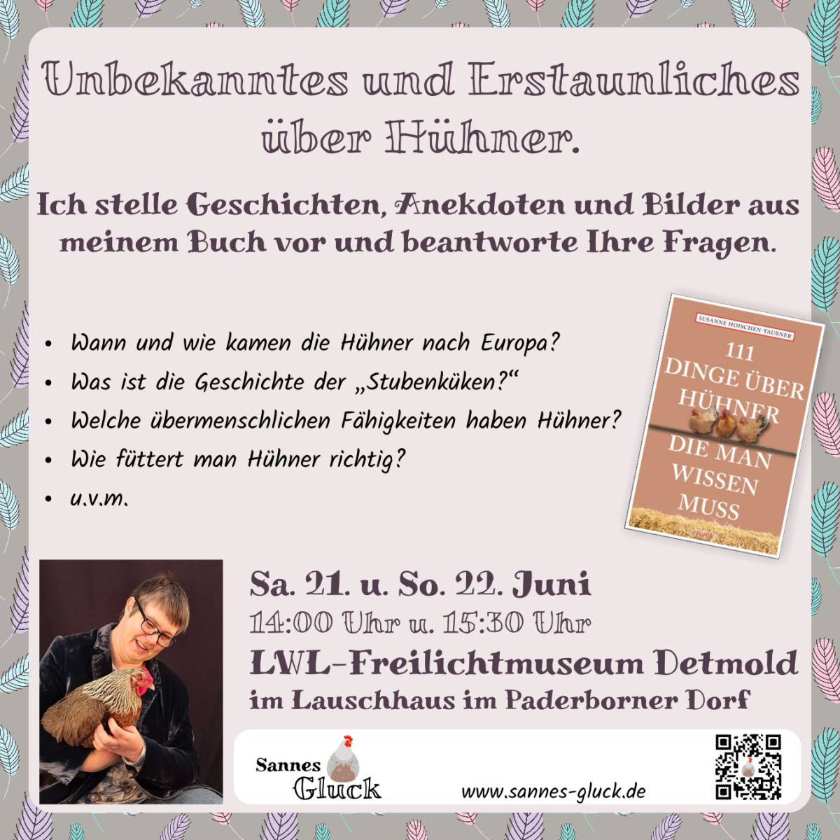 Am Ostermontag war ich eingeladen, mein Buch beim „Hühner-Tag" im Archäologischen Freilichtmuseum in Oerlinghausen vorzustellen. Der RGZV Blomberg engagiert sich hier seit Jahren und gestaltet am Ostermontag einen Tag mit vielen Informationen und Mitmach-Aktionen, besonders für Kinder. Das Wetter war herrlich und so war der Tag auch gut besucht.